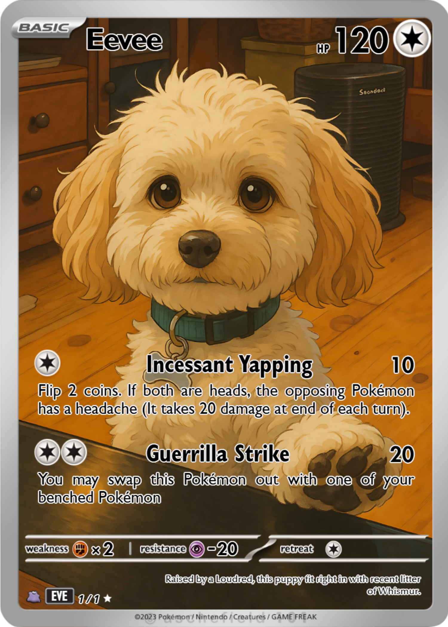 Whether it is a custom trainer card or a cute pokemon version of your pet dog, we make all kinds of custom trading cards.